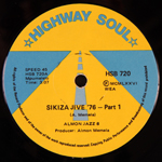 ![]() | ![]() | ALMON JAZZ 8 Sikiza Jive '76 - Part I / Part II 45 rpm, made in South Africa | 1976 issued: 1976 | HSB 720 A HSB 720 B | HSB 720 Highway Soul WEA Warner | |