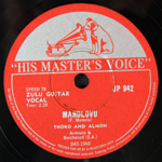 ![]() | ![]() | THE TRAVELLING SINGERS first composition by Almon Memela 78 rpm, made in South Africa | 1962c issued: 1962c | 0AS 1733 0AS 1735 | JP 725 His Master's Voice EMI | |