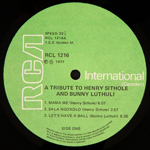 ![]() | ![]() | THE DRIVE A Tribute to Henry Sithole and Bunny Luthuli recorded two weeks before their death. 33 rpm, made in South Africa by Artone Press | 1977 issued: 1977 | RCL 1216 A RCL 1216 B | RCL 1216 RCA International Teal | |