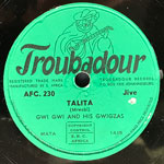 |  | GWI GWI AND HIS GWIGZAS Selina / Talita With Gwigwi Mrwebi 78 rpm, made in South Africa | 1954 issued: 1954-11c | MATA 1414 MATA 1415 | AFC 230 Troubadour Troubadour |