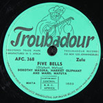 |  | DOROTHY MASUKA, HARRIET OLIPHANT AND MABEL MAFUYA Five Bells / Baye 'Goli 78 rpm, made in South Africa | 1956 issued: 1956 | MATA 1689 MATA 1690 | AFC 368 Troubadour Troubadour |