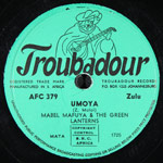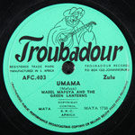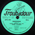 |  | MABEL MAFUYA AND THE GREEN LANTERNS Inkedama / Umama 78 rpm, made in South Africa | 1957 issued: 1957 | MATA 1737 MATA 1738 | AFC 403 Troubadour Troubadour |