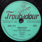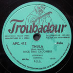 |  | NICE TIME CROONERS Umajola / Thula 78 rpm, made in South Africa | 1957 issued: 1957 | MATA 1807 MATA 1808 | AFC 412 Troubadour Troubadour |