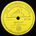 ![]() | ![]() | WILLIE'S MADCAP BAND Reviewed in Zonk Magazine 78 rpm, made in South Africa | 1950-09-12 issued: 1951-08c | 0AS 351 0AS 352 | JP 110 His Master's Voice Gramophone Co. EMI | |