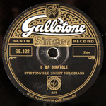 ![]() | ![]() | STIRTONVILLE SWEET MELODIANS (Zulu) 78 rpm, made in UK | 1936c issued: 1936c | 0337 0341 | GE 122 Gallotone Singer (black) Gallo | |
