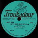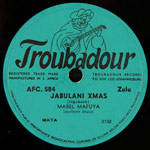 ![]() | ![]() | MABEL MAFUYA Happy Xmas - Happy New Year / Jabulani Xmas celebrating Christmas 1959 78 rpm, made in South Africa | 1959 issued: 1959-12c | MATA 2131 MATA 2132 | AFC 584 Troubadour Troubadour | |
