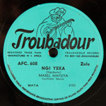 ![]() | ![]() | MABEL MAFUYA 78 rpm, made in South Africa | 1959 issued: 1959 | MATA 2113 MATA 2114 | AFC 579 Troubadour Troubadour | |