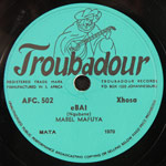 ![]() | ![]() | MABEL MAFUYA 78 rpm, made in South Africa | 1958 issued: 1958 | MATA 1969 MATA 1970 | AFC 502 Troubadour Troubadour | |
